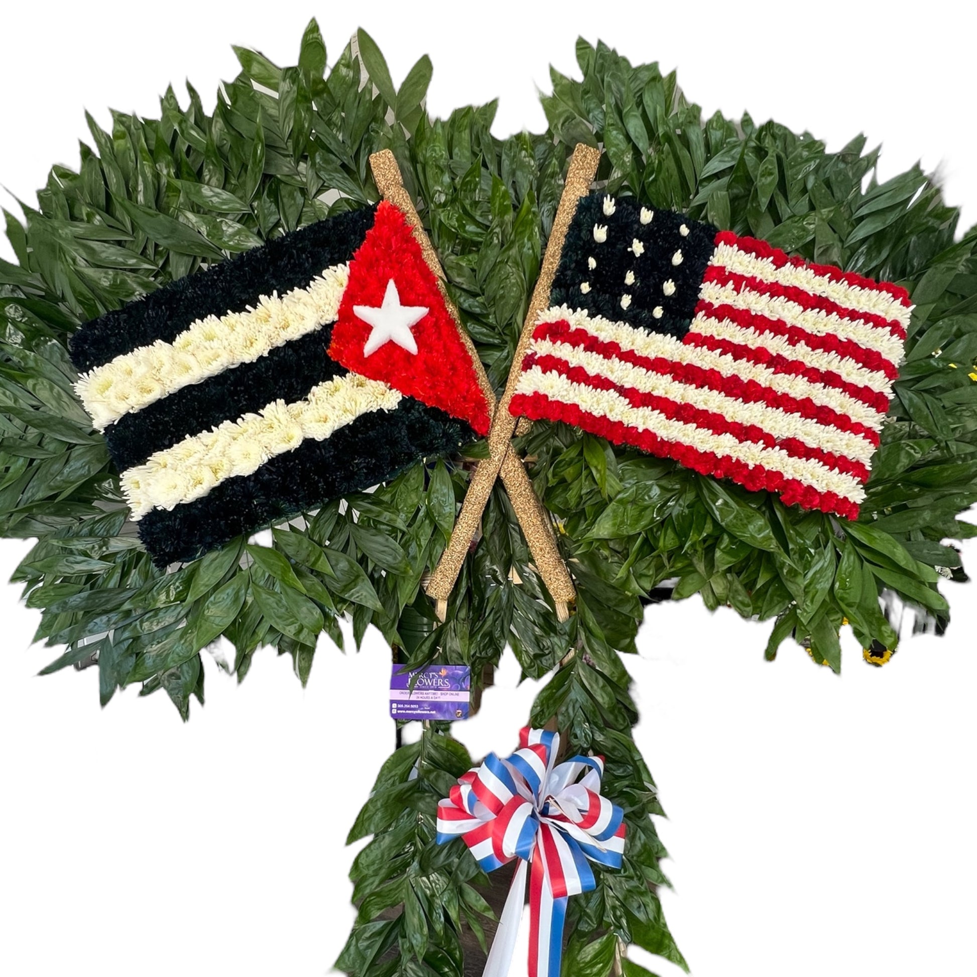 Celebrate the past, present and future with our Memory double flag. Our beautiful combination of two flags – the Cuban and the American Funeral Flag – is the ideal way to recognize culture and heritage while honoring a life well lived. This vibrant, visually stunning banner is perfect for memorial services and as wall decorations. Pay tribute to your loved one, business associate or friend with this timeless remembrance of their impact on your life. Get your Memory double flag today and honor those who have made a difference in your world. All combinations are possible.